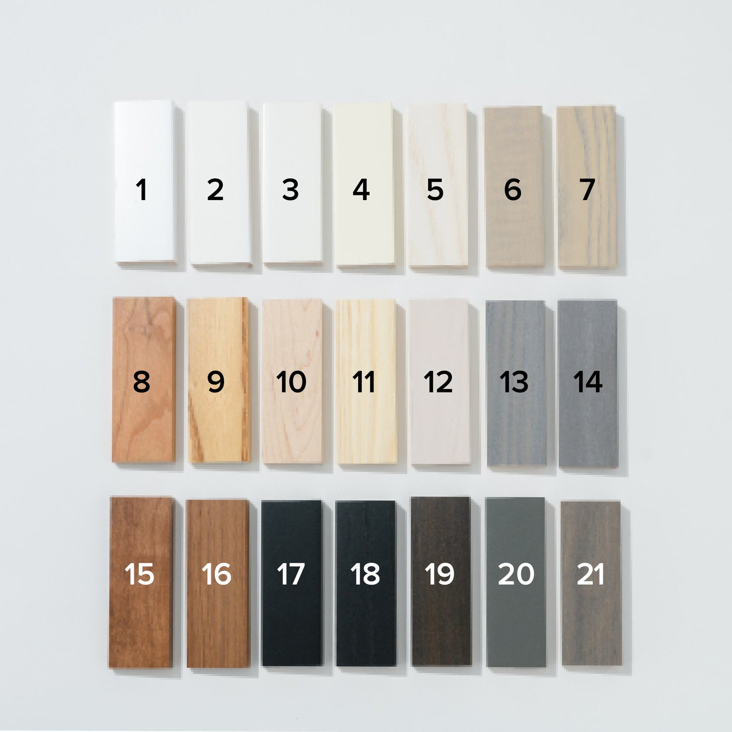 'Rough Cuts' are imperfect samples available as individual frame stick samples. Select up to all 21 finishes* or just one. Each sample requires a $5 deposit.