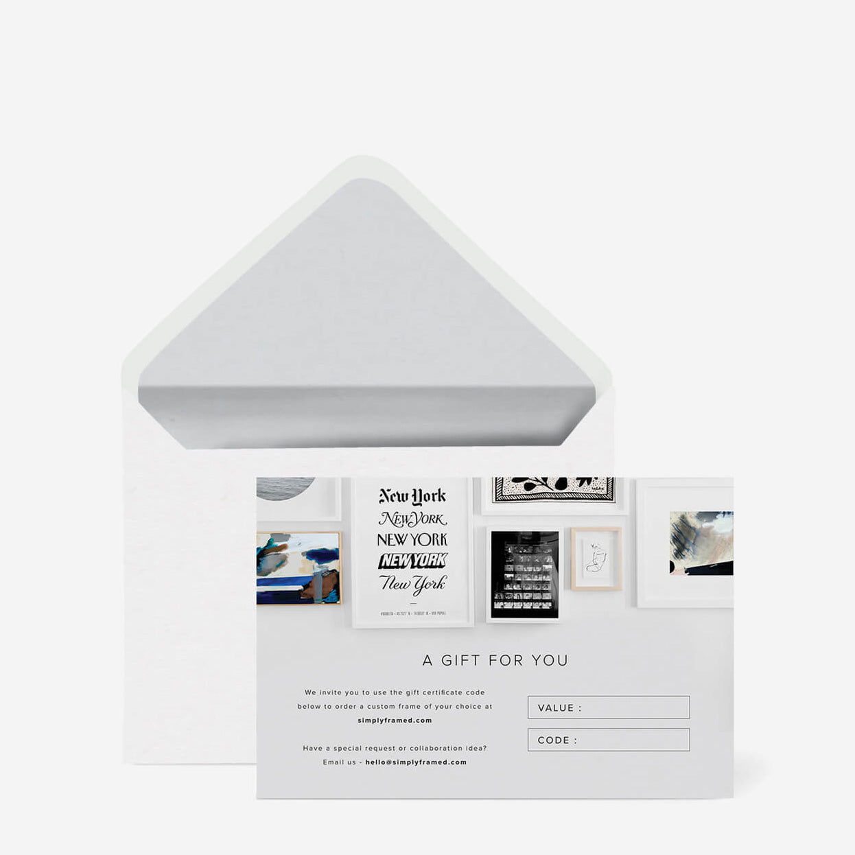 Bestow upon your giftee the ultimate framing flexibility with a Simply Framed digital gift card. Gift cards are delivered by email within 24 hours and contain instructions to redeem at checkout. No additional processing fees and no expiration date - just endless possibilities for #happywalls!